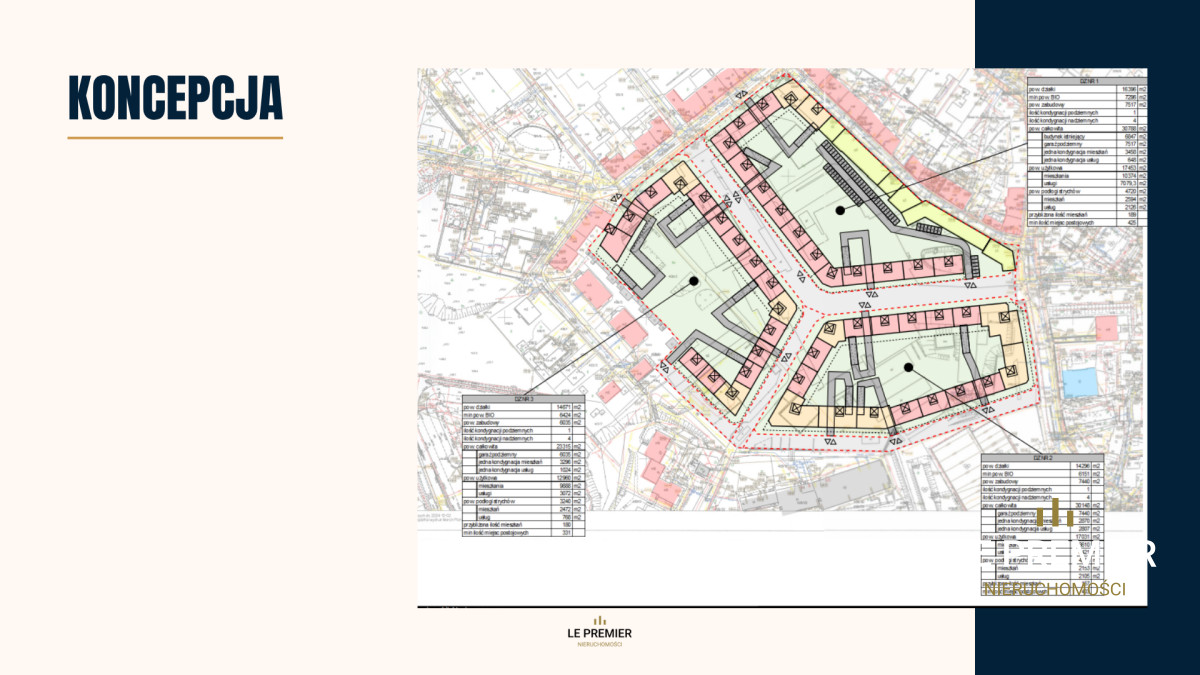 Wszystkie działki są w użytkowaniu wieczystym i mają zbliżony metraż. Istniejące budynki są w trakcie rozbiórki (z wyjątkiem zabytkowych). Możliwość zakupu pojedynczych działek lub całego kompleksu.