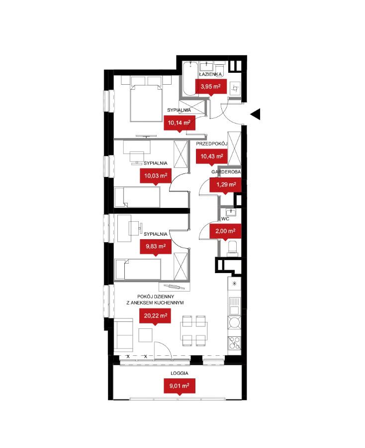 - Trzy sypialnie