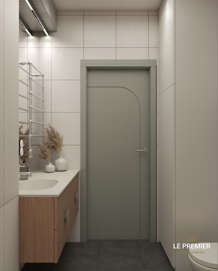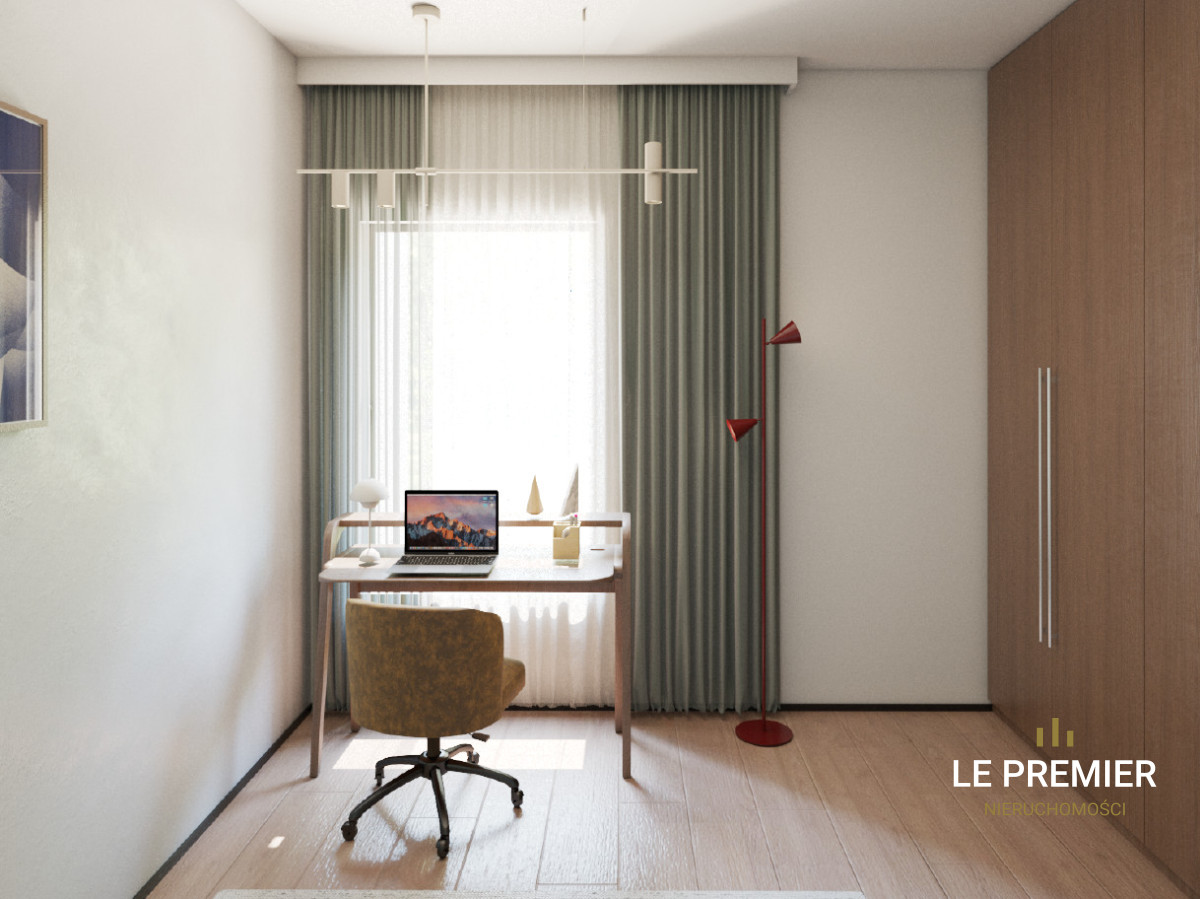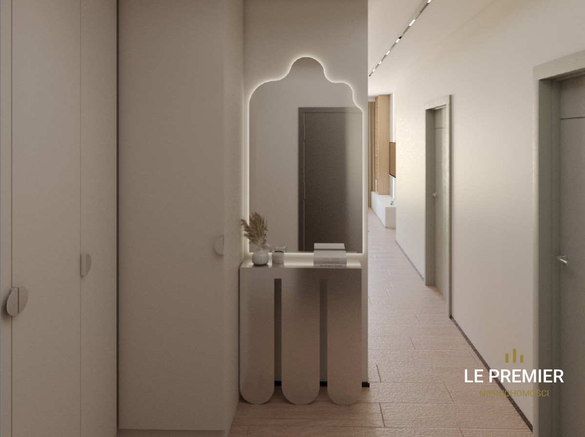Zdjęcia przedstawione w ofercie to wizualizacje gotowego projektu wydzielenia trzech pokoi. Aktualnie mieszkanie jest dwu pokojowe z osobną kuchnią. Wydzielenie trzeciego pokoju wiązałoby się z przeniesieniem kuchni do salonu.
