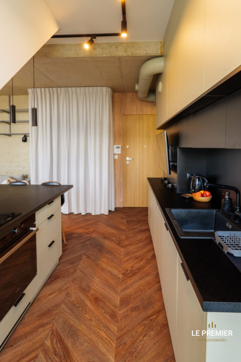 - Kuchnia: W pełni wyposażona w najwyższej klasy sprzęt AGD (zmywarka, płyta indukcyjna, piekarnik, duża lodówka).