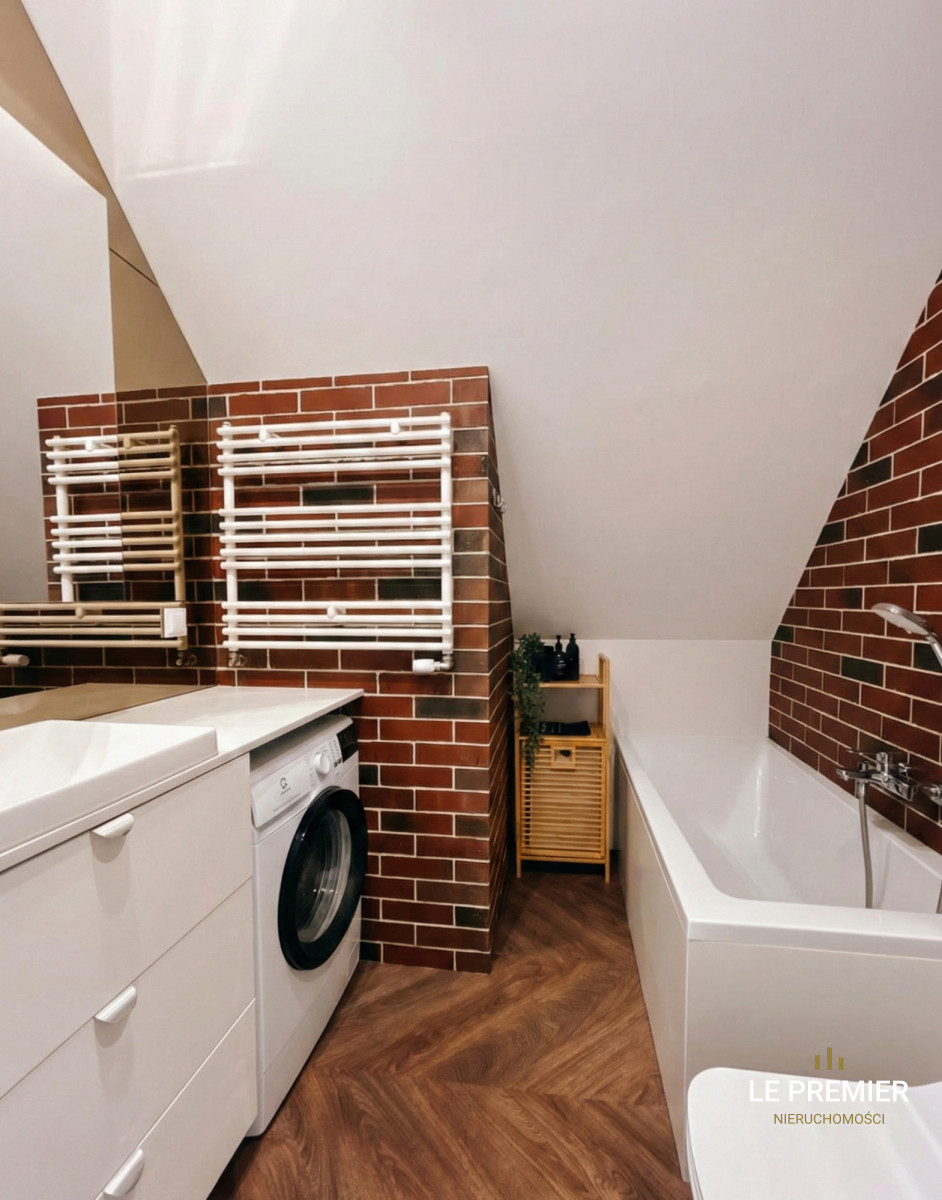 - Łazinka: Z wanną, dużym lustrem i ogrzewaniem podłogowym.